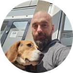 Aujourd’hui, je travaille avec mon chien, Chorizo, qui est présent à 100 % avec moi. Il a été sélectionné dans un centre pédagogique pour son tempérament calme et sociable, puis formé pour s’adapter au cadre professionnel.